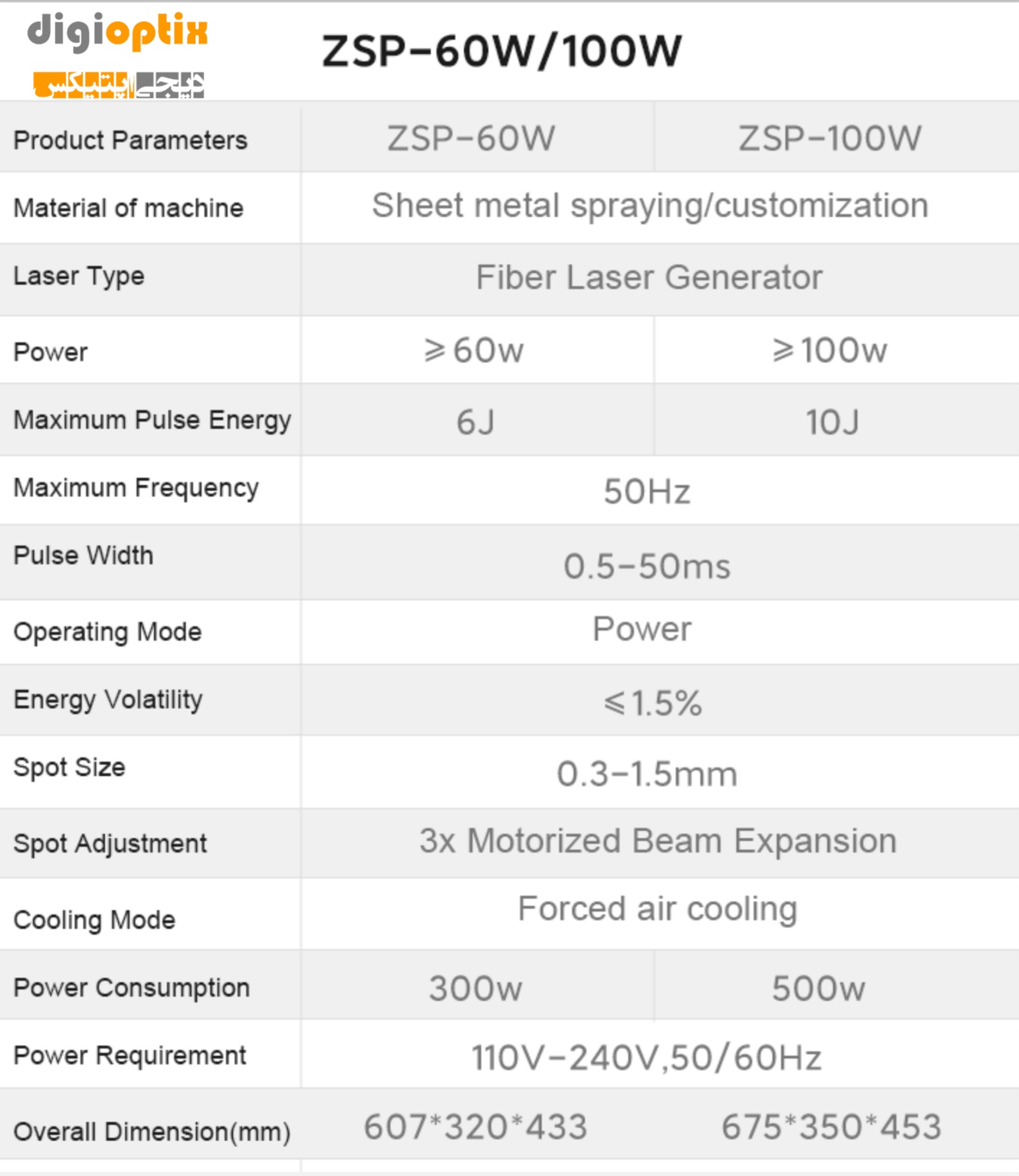 توان لیزر: ۲۰ تا ۵۰ وات (بسته به مدل)