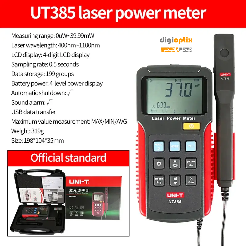 توان سنج لیزری UT385 برای اندازه گیری انرژی خروجی پرتوهای لیزر برای آزمایش یا کاربردهای سیستم لیزری استفاده می شود. استفاده می کند