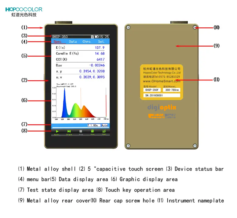 طیف یکپارچه، تابش، تمرکز بر نیر، تست منبع نور مادون قرمز، با صفحه نمایش لمسی 5 اینچی، نمایش زمان واقعی پارامترهای اندازه گیری و منحنی ها، استفاده راحت و سریع.
