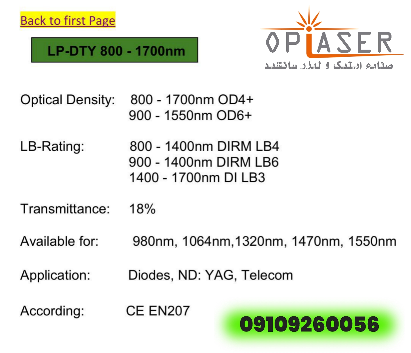 - Optical Density : 800-1700nm OD+4، 900-1550nm OD+6