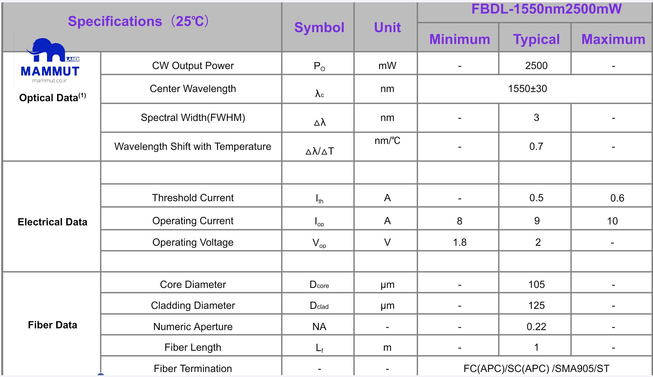 - توان نوری : 2500mW