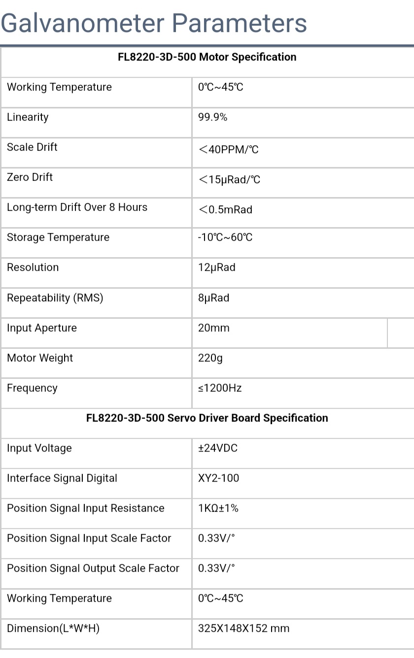 🔹 مشخصات فنی Sino-Galvo FL8220-3D-500