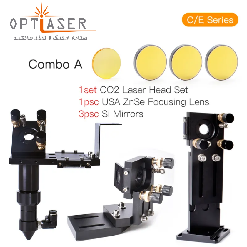 ست لنز و آینه به همراه مونت متحرک و ثابت آینه و هد دستگاه لیزر co2 تیپ A